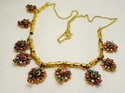สร้อยคอพลอย 3 สี ทับทิม มรกต เพชรซีก นน.24.50 g