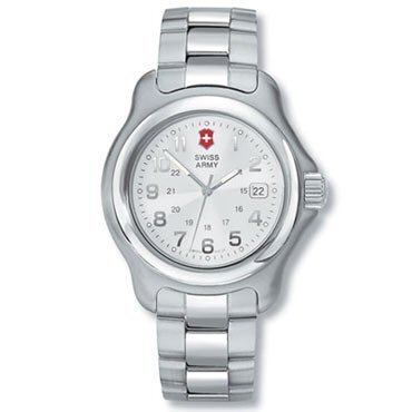The classic Swiss-made Victorinox Swiss Army Watch has a stainless steel case and bracelet around. The silver dial features a date window and luminescent. The clock has a fine Swiss quartz movement accurate, which is protected by a resistant sapphire crystal with a water-resistant to 100 meters (330 feet).