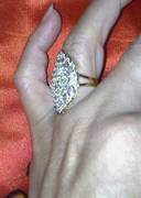 ตัวเรือนแหวน เป็นทอง 90 % น้ำหนักทอง 8.5 กรัม เพชรน้ำหนัก 1 กะรัต 65 ตัง เป็นกะรัตเลยค่ะ น้ำขาวใสมากๆ เล่นแสงดีสุดๆ ดูเก๋ไก๋มาก เพชรเยอะดูเก๋ ๆ ไฮโซอยู่น่ะ ทรงข้าวหลามตัด น่ารักมาก