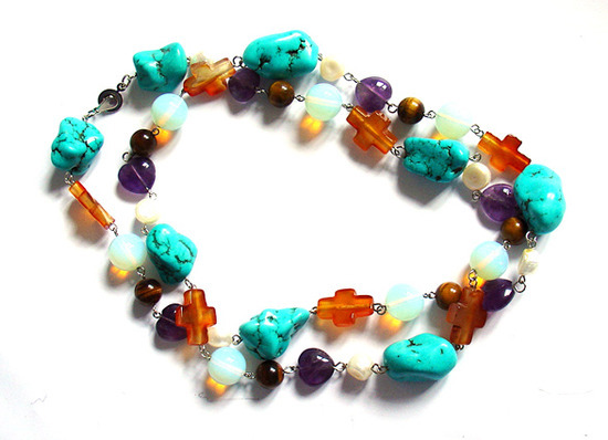 สร้อยคอหินเม็ดโตๆสีสวยซ้อน2ชั้น เทอร์ควอยซ์+มุก+มูนสโตน+ไทเกอร์อายส์+อเมทิส+คาร์เนเลี่ยน