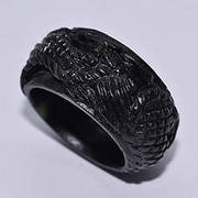 แหวนหยกเขียวเข้มแกะลายมังกรรอบวง 45.88 กะรัตหยกไทยหายาก