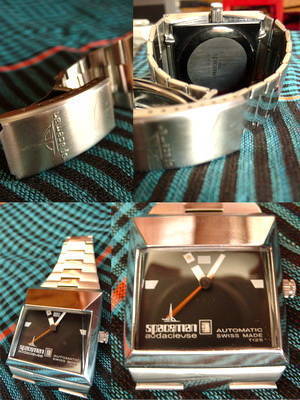 นาฬิกา SPACEMAN สำหรับนักสะสม นาฬิกา Retro70's Designer : ANDRE LE MARQUAND THIS IS FOR A VERY RARE SPACEMAN AUDACIEUSE GENTS WATCH . EARLY 197O'S . SWISS MANUAL WINDING MOVEMENT. THIS WATCH DESIGNED BY ANDRE LE MARQUAND MEASURES 40MM TOP TO TAIL , 37MM SIDE TO SIDE ( WITHOUT THE CROWN ) , 14.5MM THICK .
