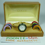 ขาย นาฬิกา Gucci กำไรข้อมือ สีทอง เปลี่ยนกรอบหน้าปัดได้ตามสีเลยค่ะ สภาพดีมากค่ะ พร้อมกล่อง ราคาพิเศษมากค่ะ รับประกันของแท้ 100%