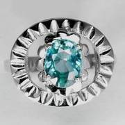 ลักษณะ : แหวนเงิน พลอยเพทายสีฟ้าอมเขียวเจียรทรงรูปไข่ น้ำงาม เป็นพลอยแท้