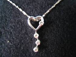 จี้รูปหัวใจ ตรงปลายกลิ้งได้ค่ะ เป็นทองคำขาวฝังเพชรของแท้ 4 เม็ด ราคานี้รวมสร้อยทองคำขาวแล้วค่ะ น้ำหนักจี้รวมสร้อย 2 กรัม