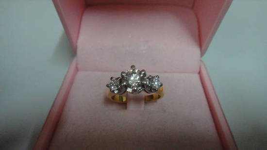 ตัวเรือนเป็นทองหนัก 6g เพชรเม็ดกลาง1เม็ดหนัก0.64ct เม็ดข้าง2เม็ดน้ำหนักรวม0.35ct