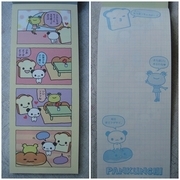 +*+*+กระดาษโน้ต Sanrio ลาย Pankunchi+*+*+ Sanrio's Pankunchi Perforated Memo Pad สมุดฉีกกระดาษโน้ตน่ารักลาย Pankunchi (ขนมปังกับแพนด้า) ของ Sanrio แท้ (Made in Japan) ขนาดกะทัดรัด 18 cm. X 7 cm. 1 เล่ม มี 3 ลาย - 1 แผ่นมี 2 ลาย (หน้าและหลัง) มีสองเล่มให้เลือก สันฟ้า และ สันเขียว (***ลายไม่เหมือนกัน***) ***ในประกาศนี้คือลายของเล่มสันฟ้า*** ทั้ง 2 เล่ม มีกระดาษเล่มละ 79 แผ่น