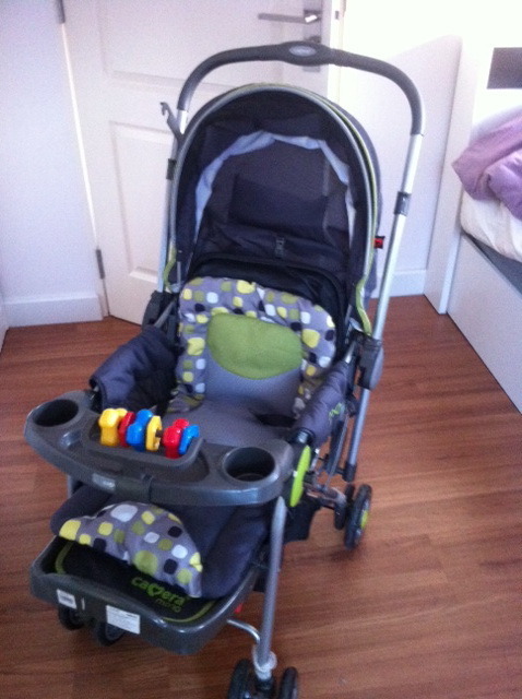 สภาพใหม่เอี่ยม มีที่บังแดด ที่วางน้ำและอาหาร ปรับนอน ปรับนั่งได้ จะเข็นด้านหน้าก็ได้ ด้านหลังก็ได้