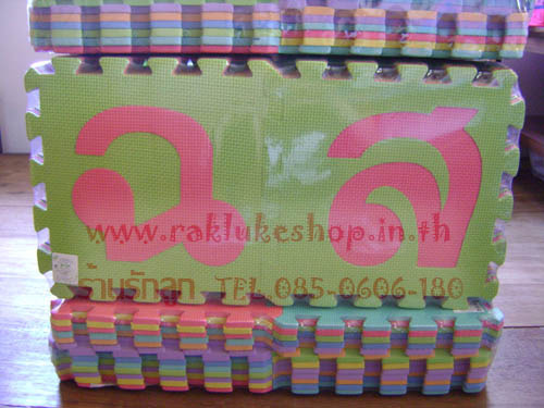 มีจำนวน 44 แผ่น ตัวอักษร ก ถึง ฮ (Non -Toxic) มีเครื่องหมายมอก. รับรองสินค้า ใช้ป้องกันกระแทก ใช้รองคลานสำหรับเด็ก ใช้รองเวลาเล่นโยคะ