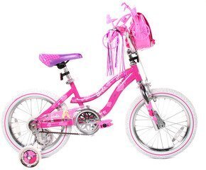 Barbie Girls 16 inch BMX bike has a frame 16 with a free mini-tour with me Barbie. Some decorative elements have comfortable handles, decorative carpets and steering handlebar. Front and rear steel caliper brakes with resin levers. Matching pink painted wall rims with tires, wheels. Adjust the seat lock quickly and hi-gloss seals with images to match.