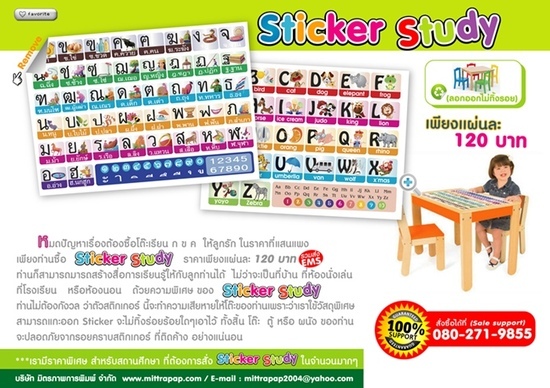 เพียง ท่าน ซื้อ Sticker Study *****ของเรา ราคา เพียงแผ่นล่ะ 120 บาท ***