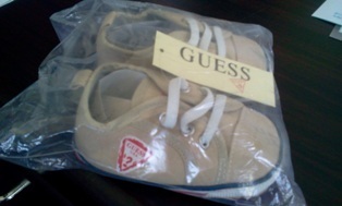 ไม่ต้องไปซื้อห้างให้เปลืองเงิน เชิญทางนี้ พื้นรองเท้านุ่ม สำหรับน้องหนูสไตล์เซอร์ ๆ ยี่ห้อ Guess สำหรับอายุ 1ขวบ-1ขวบครึ่ง ความยาวเท้าประมาณ 13 ซม.โทร. 083-3543435