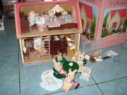 บ้านตุ๊กตาซิลวาเนีย ขนาดสูง 28 ซม.ลึก 20 ซม. กว้าง 30 ซม. อุปกรณ์ครบทุกอย่าง อุปกรณ์ทุกชิ้นปรับโยกไปมาได้ สภาพดี พร้อมกล่อง