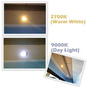 สีของแสงไฟ มีแบบ 9000K Day Light (สีขาว) และ 2700K Warm White (สีขาวอมเหลือง)