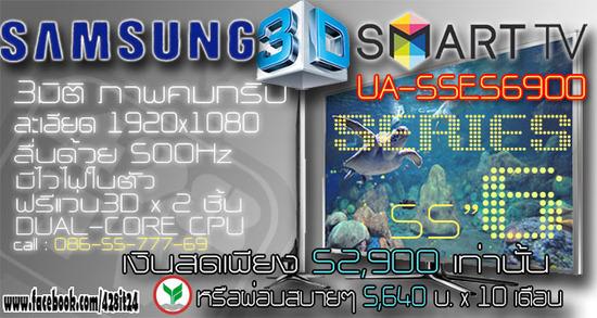 SAMSUNG 3D SLIM SmartTV UA-55ES6900 500Hz 1080P ภาพคม ไซส์ใหญ่ ดีไซน์สวย รูดได้ ผ่อนเบาๆ ส่งฟรี มีแถม