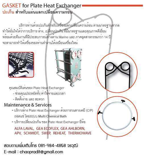 บริการ เปลี่ยนประเก็นของ Plate Heat Exchanger ยี่ห้อ Alfa laval, GEA ECOFLEX,GEA AHLBORN,APV,SCHMIDT,SWEP,REHEAT,THERMOWAVE หรือรุ่นอื่นๆ