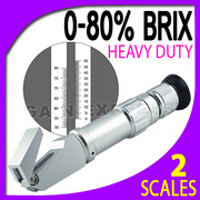 - สเกลคู่ 0-80% บริกซ์ (สเกลที่ 1 ค่า 0-50% บริกซ์, สเกลที่ 2 ค่า 50-80% บริกซ์) สลับสเกลกันด้วยการหมุนที่ตัวเครื่อง