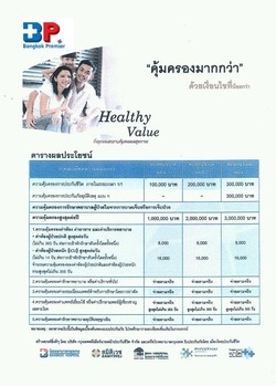 แผนประกันสุขภาพ Healthy Value วงเงิน 1-3 ล้านบาท ต่อปี จาก Bangkok Premier ในเครือโรงพยาบาลกรุงเทพ - ให้วงเงินคุ้มครองสูงสุด 1,000,000 - 3,000,000 บาท ต่อปี