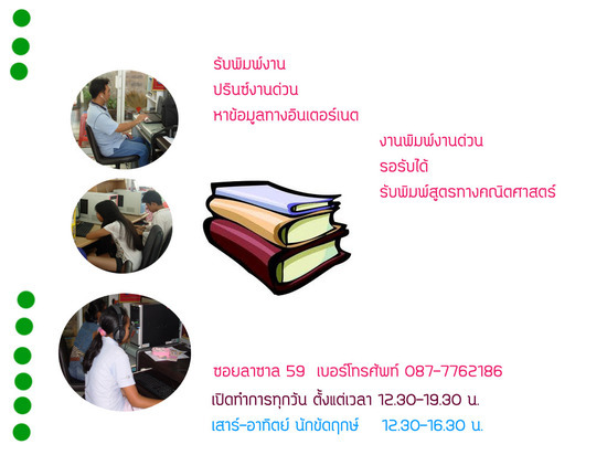 รับพิมพ์งานเอกสาร ทั้งไทย-อังกฤษ รับแปลงานเอกสาร ไทย เป็น อังกฤษ หรือ อังกฤษ-ไทย งานเร่งด่วนรอรับไ้ด้ รับสอนคอมพิวเตอร์สำหรับผู้ที่ไม่มีพื้นฐานมา่ก่อน สนใจ ติดต่อ 087 7762186