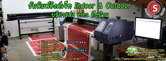 สนใจสามารถสอบถามก่อนได้ ทางอีเมล์ ที่ [email protected] m (ไม่มีวันหยุด) http://www.suansiamcopy.com/inkjet ขอบคุณที่ใช้บริการครับ ราคางานพิมพ์ต่างๆ ดังนี้ (สำหรับลูกค้าทางเว็บไซต์) *** เมตรเดียว ก็รับทำครับ *** OUTDOOR (ทนแดด กันน้ำ)