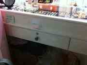 ขายด่วน เคาว์เตอร์ มือสอง โชว์สินค้า และลิ้นชักเก็บเงิน สีขาว ท๊อปกระจก ขนาดใหญ่