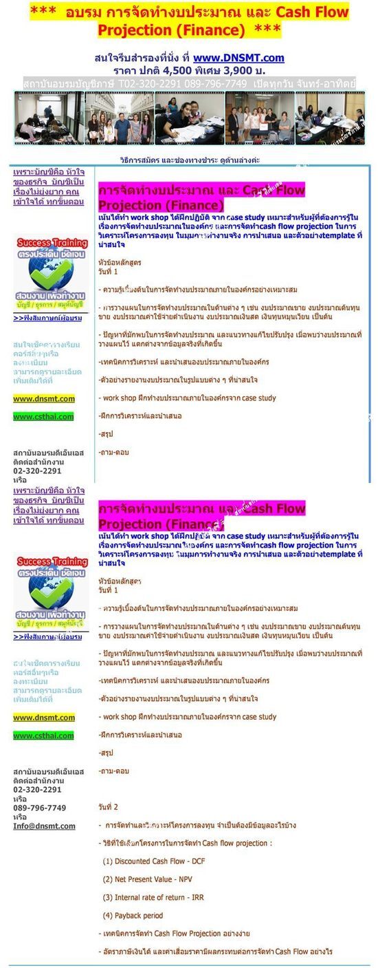 เปิดแล้ว อบรมบัญชี หลักสูตร จัดทำงบประมาณ และ cash flow Projection (Finance)