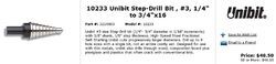 ดอกเจาะStep Drill ยี่ห้อ UNIBIT # 3 (MADE IN USA by IRWIN) เจาะได้9ขนาดตั้งแต่1/4นิ้ว-3/4นิ้ว