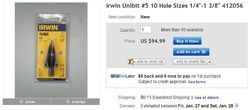 ต้องการขายดอกเจาะStep Drill ยี่ห้อ UNIBIT # 5 (MADE IN USA by IRWIN) เจาะได้10ขนาดตั้งแต่ 1/4นิ้ว-1.37นิ้ว ก้านจับ4หุน ของใหม่แท้100% ราคา2350.- ติดต่อ022512637 พรเทพ
