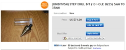 ต้องการขายดอกเจาะStep Drill ยี่ห้อ UNIBIT # 5M (MADE IN USA by IRWIN) เจาะได้13ขนาดตั้งแต่ 5mm-35mm ก้านจับ13mm ของใหม่แท้100% ราคา2250.- ติดต่อ022512637 พรเทพ