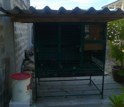 กรงนกแก้วแข็งแรงมาก มี 3 ประตู มีหลังคากันฝน ขนาด 1 เมตร x 1.5 เมตร สูง 1 เมตร สั่งทำมาราคา 9000 บาท ใช้เลี้ยงนกอัฟริกันเกรย์ซึ่งขายไปแล้ว จึงต้องการขายกรงในราคา 6500 บาท
