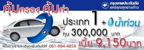 กรุงเทพประกันภัย คุ้มครองคุ้มค่าประเภท 1 + น้ำท่วม ทุน3แสน 9150