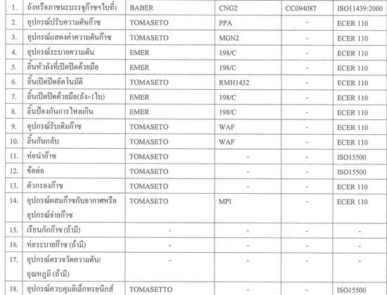 1 ถังแก๊ส BABER 100 กก. 2. อุปกรณ์ความดันก๊าซ, ลิ้นเปิดปิด AUTO, ชุดควบคุม, หม้อต้ม, อุปกรณ์เติมก๊าซ ยี่ห่อ TOMASETO 3. อุปกรณ์ระบายความดัน, ลิ้นเปิดปิดด้วยมือ EMER ติดใช้งานไปเพียง 30,000 กิโล จริงๆแล้วไม่อยากถอดแต่เนื่องจากบ้านและสถานีห่างกัน 20 กว่ากิโล ไปกลับก็ 40 กว่ากิโล ต้องมารับของเองนะครับ