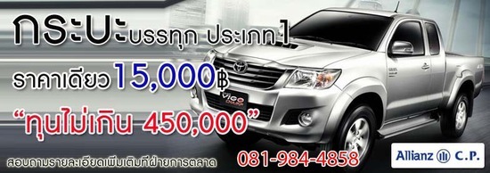 ประกันรถกระบะชั้น 1 ทุนไม่เกิน 4.5 แสน ราคาเดียว 15000 เอกสารสำเนาทะเบียนรถ และหน้าตารางกรมธรรมเดิมครับผม 0819844858 ใหญ่ ครับ