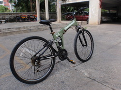 ขายจักรยานเสือภูเขา Hummer พับได้ นำเข้าจากญี่ปุ่น วงล้อ 26 นี้ว เฟรมเหล็ก สีเขียว มีโช้คหน้า+กลาง ชุดเกียร์ Shimano แข็งแกร่ง ปั่นลื่น ทนทาน หายาก บริการจัดส่งทั่วประเทศ ติดต่อได้ตลอด 085-442 6867/มนตรี ท่านสามารถเข้าดูรถคันอื่น ๆ เพิ่มเติมได้ตามเวปด้านล่างครับ http://montrihomebike.tarad.com