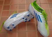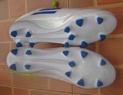รองเท้า สตั๊ด adidas F50 adizero TRX FG - White/Anodised Blue/Slime หนังสังเคราะห์ สีขาว/เขียว us 9 uk 8.1/2 fr 42.2/3 jp 270 chn 265