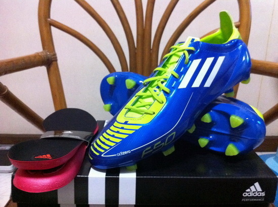 adidas F50 adizero TRX FG - หนังสังเคราะห์ สีฟ้า/เขียว ราคา 7,690 ขาย 2,800 oversize 0.5 size 9.5us 275jp =>> 10us 280jp