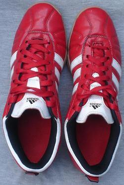 Adidas Adiquestra พื้นยางดิบแดงทั้งคู่คาดขาวเบอร์ 42