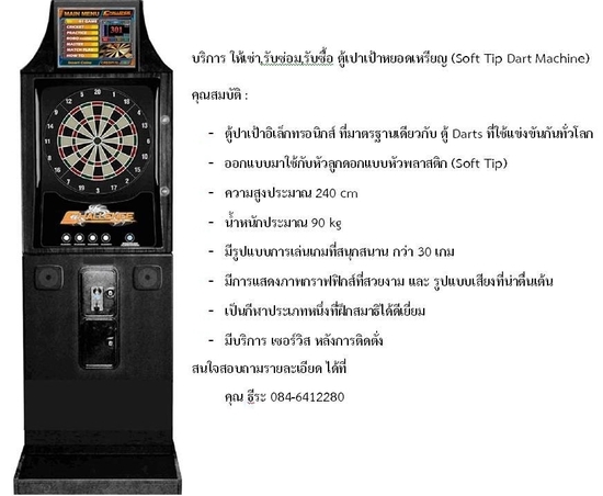 ลายละเอียดการตั้งตู้ จังส่งและติดตั้งฟรี(ในกรุงเทพฯ)จ่ายมัดจำ 2 เดือนเป็นจำนวณ 7000- บาท เดือนต่อๆไปทุกรอบหนึ่งเดือน ทางบริษัทจะเข้าไปเก็บค่าเช่าตู้เป็นจำนวณ 3500- พร้อมตรวจเช็คระบบ และเปลี้ยนอะไหล่และ อุปกรณ์ ตู้ปาเป้าให้ฟรี