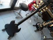 SG GRECO SETNECK ทำสีดำด้าน คอเคยร้าว ซ่อมมาดีแล้ว รับประกันตลอดอายุ PU เดิมๆ สายเงินเสียงดีมากน้องๆกิ๊บสันเลย 9,500 tel.089 5337530 แถมกระเป๋า