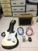 กีต้าร์ไฟฟ้า(single coil) สีขาว + แอมป์ + เอฟเฟค(ก้อน)ดิสโตรชั่น + สายแจ็ค(2สาย) เหมาจ่าย 3500 บ. **ราคาคุยได้**