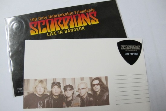 ปิคกีตาร์พร้อมโปสการ์ดที่ระลึกในงาน Scorpions Live in Bangkok 2004