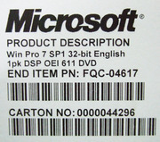 Windows 7 Professional 32-bit English 1pk DSP OEI 611 DVD