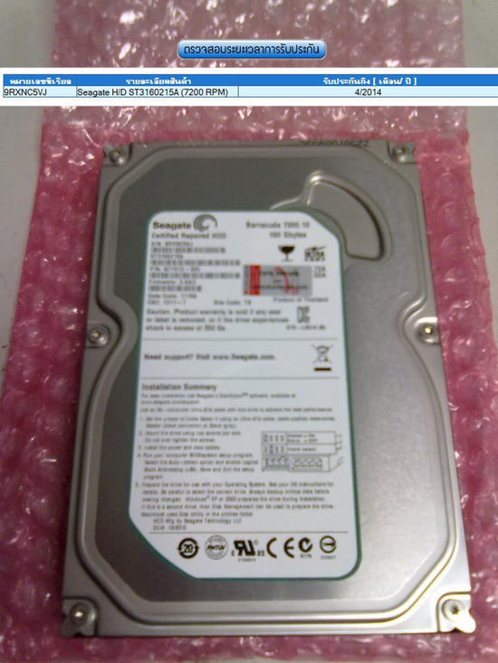 ขาย Harddisk Seagate IDE 160 Gig. ประกันถึง 2014