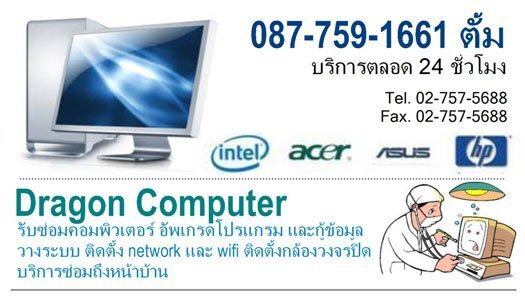 รับซ่อมคอมพิวเตอร์ ลงโปรแกรม อัพเกรดโปรแกรม กู้ข้อมูล วางระบบ,ติดตั้ง network และ wifi ติดตั้งกล้องวงจรปิด ทางร้านบริการซ่อมถึงหน้าบ้าน ราคาเป็นกันเอง โดยช่างผู้ชำนาญ