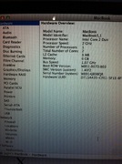 MacBook Pro 13 core 2 Duo 2.0 GHz Ram 6 GB DDR3 Harddisk 250 Gb Battary ใช้งานได้ 2 ชม. (พึ่งเปลี่ยนมา Cycle Count 39 )