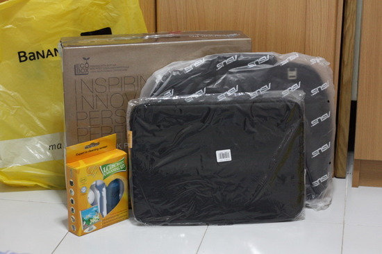 อุปกรณ์ที่จะได้รับ : เครื่อง, อแดปเตอร์ ,เม้าส์ Asus ,คู่มือ ,กล่อง ,กระเป๋า ,ซอร์ฟเคส