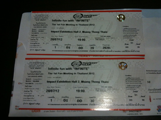 ขายบัตรคอนเสิร์ต Infinite fun with "INFINITE" เล่นวันที่ 28/07/55 เวลา 19.00 อิมแพค เมืองทอง เป็นตั๋วโซน D1 ด้านหน้า โซน 2000 บาท มีอยู่ 2 ใบครับ