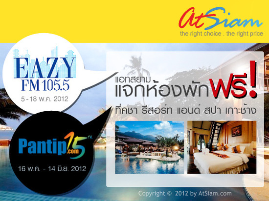 แอทสยาม ร่วมกับ105.5 Eazy FM และ pantip.com แจกห้องพักฟรี ๆ ที่ "เกาะช้าง"