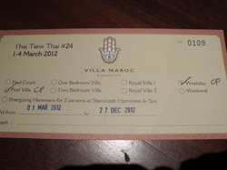 ขาย บัตรห้องพัก Villa Maroc ห้อง Pool Villa ซื้อในงานไทยเที่ยวไทย ราคาเต็ม 25100 บาท ดูต่มรูปได้ครับ แต่เราขายในราคา 24,500 บาท มีอะไรบ้าง 1. ราคาห้องพัก Pool Villa 2 คืน 22,400 บาท 2.Spa สำหรับ 2คน 2,700 บาท http://www.villamarocresort.com/ ราคาพร้อมส่ง นัดเจอ (ขอในกรุงเทพนะครับ) สอบถามรายละเอียด โทร 087-5111829 คุณ ใหญ่ ตั้งแต่เวลา 11.00 - 22.00 น