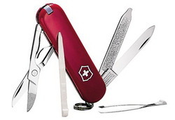 พี่ ๆ ที่อายุ 35Up ที่เคยดู Series หนังฝรั่งทาง TV เมื่อ 30 กว่าปีก่อนคงจำได้กับหนังเรื่องหนึ่งนะครับ ซึ่งเป็นเรื่องเกี่ยวกับพระเอกที่ชื่อ Macgyver ซึ่งสามารถแก้ไขสถานการณ์คับขันโดยใช้สภาพแวดล้อมรอบข้างแก้ไขปัญหาให้ลุล่วงไปได้อย่างเฉียดฉิว โดยในหลาย ๆ ครั้งมีเพียง"มีดพก"อันเล็ก ๆ เพียงอันเดียวก็สามารถช่วยให้ตัวเองรอดพ้นจากอันตรายต่าง ๆ ได้นานับปการซึ่งเป็นเรื่องที่น่าทึ่งมากกับมีดพกชนิดนี้จนคนเรียกกันติดปากว่า "มีดพก Macgyver" และต่อมามีดพกชนิดนี้ก็โด่งดังเป็นที่แพร่หลายรู้จักกันมากมาย หลายคนพยายามหาซื้อมาครอบครองเป็นของใช้ของตนเเอง หรือไว้ใช้ประจำบ้าน ซึ่ง"มีดพก Macgyver" ดังกล่าวก็คือ Swiss Army ยี่ห้อ "Vitorinox " นั่นเองครับ และแน่นอนครับผมขอแนะนำมีดพกยี่ห้อดังกล่าวให้กับพี่ที่สนใจซื้อไปใช้ติดตัวเป็นพวงกุญแจประจำตัว หรือประจำรถยนต์ ที่บ้าน Office ในราคาถูกสุด ๆ